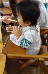 保育園の給食メニューのお味噌汁を、親子で味わっていただきました。