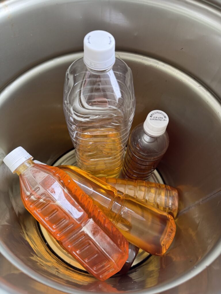 ハイ!缶の中にあるのは、使い終わった食用油です。