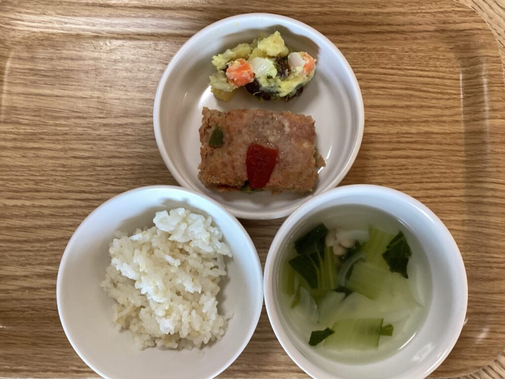 お部屋にはいつもの給食が並びます。初めての給食はどうだったかな?