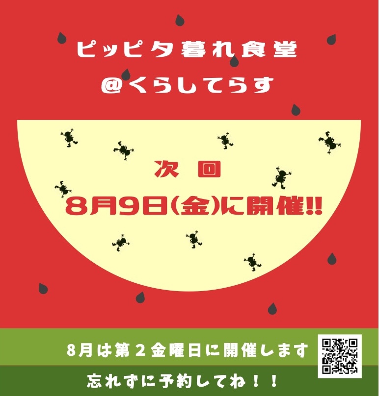 次回のピッピ夕暮れ食堂@くらしてらすは8月9日(金曜日) です