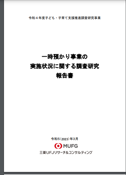 一時預かり事業の実施状況や課題、今後の利用促進、および、効果的な支援の検討にむけて、厚生労働省子ども・子育て支援推進調査研究事業として実施された「一時預かり事業の実施状況に関する調査」(三菱UFJリサーチ&コンサルティング)の報告書が公開さ... -