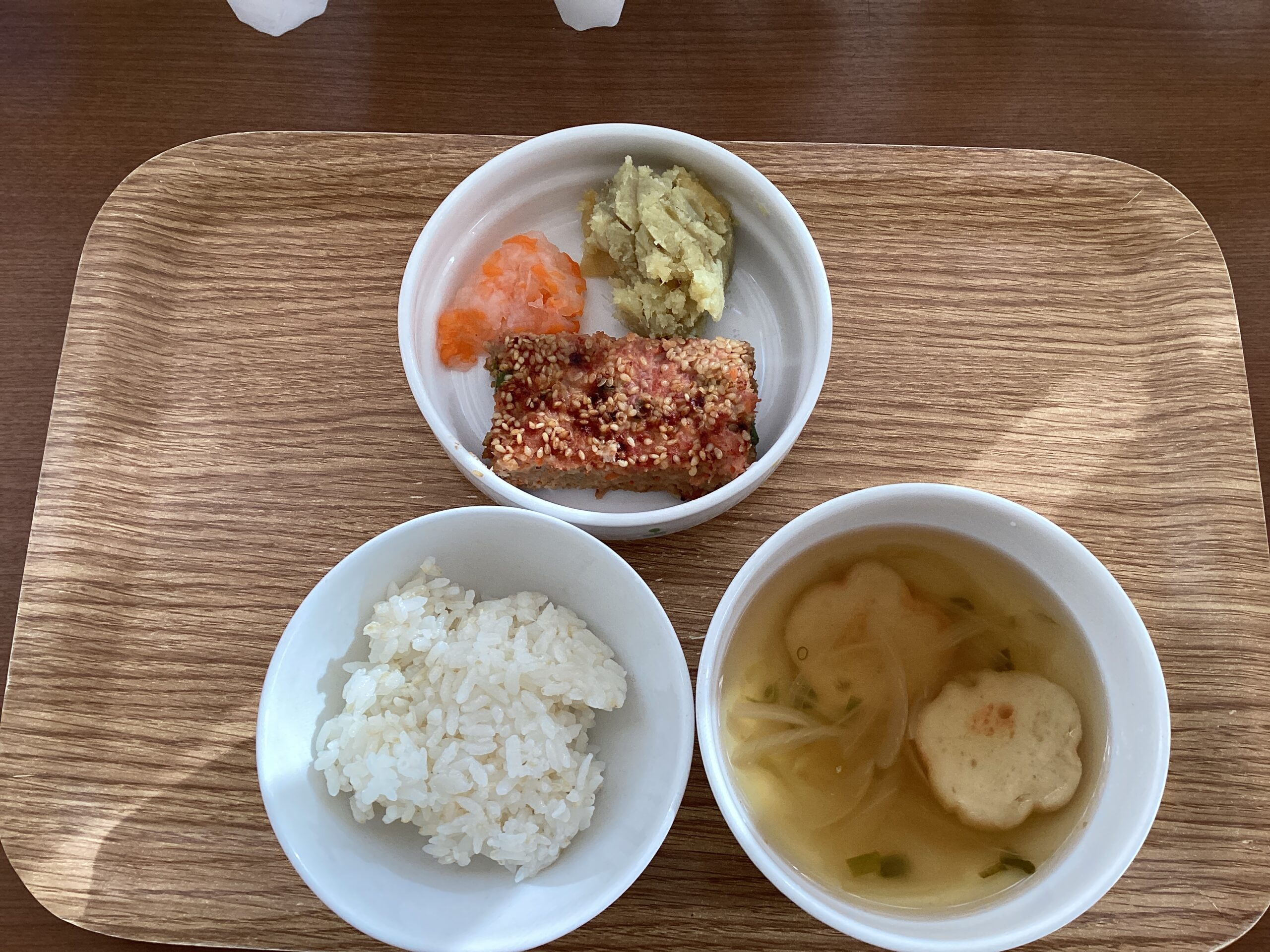 ご飯 豆腐と小松菜すまし汁 松風焼 ほうれん草お浸し