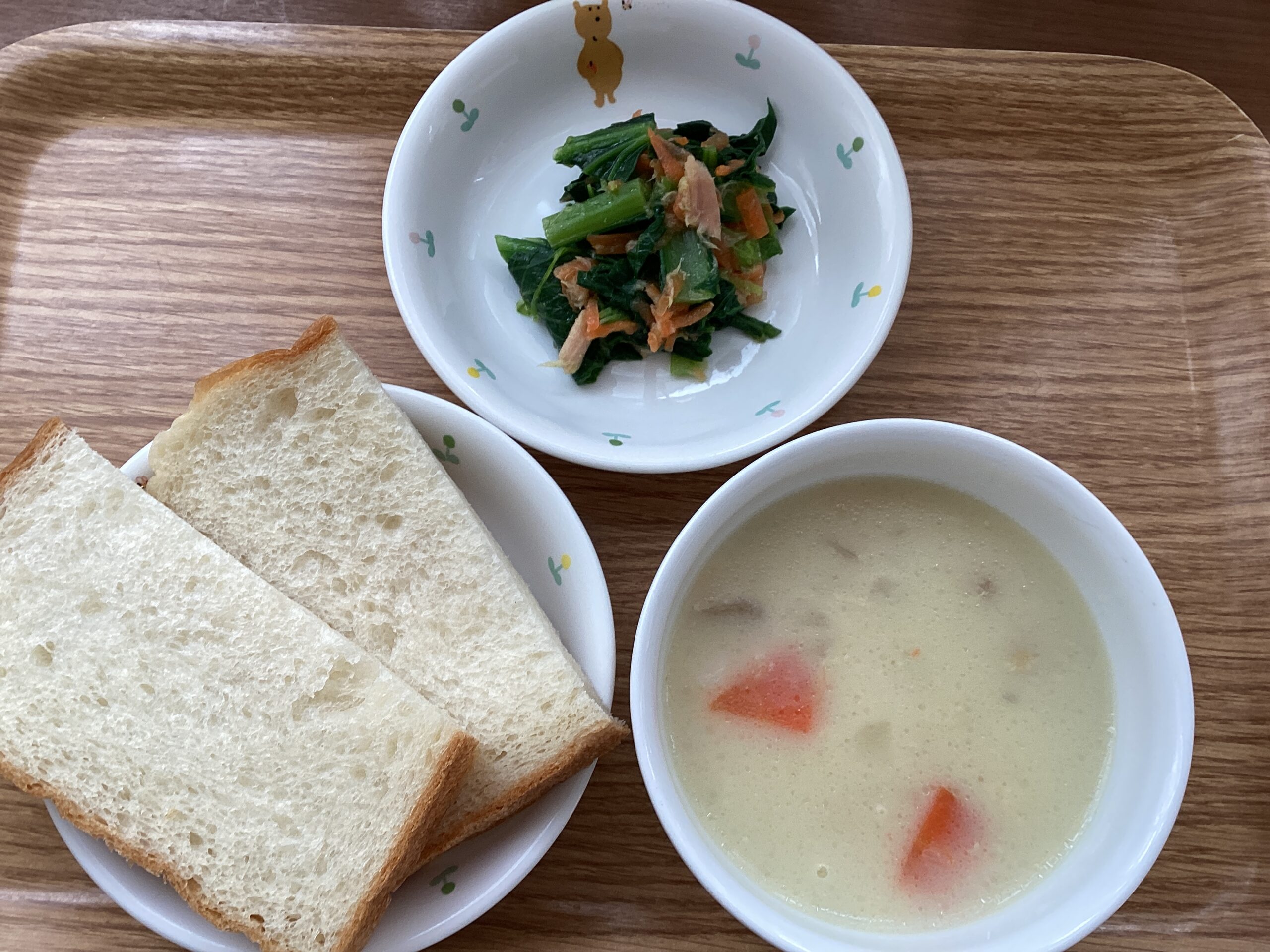 パン クリームシチュー ツナ小松菜サラダ