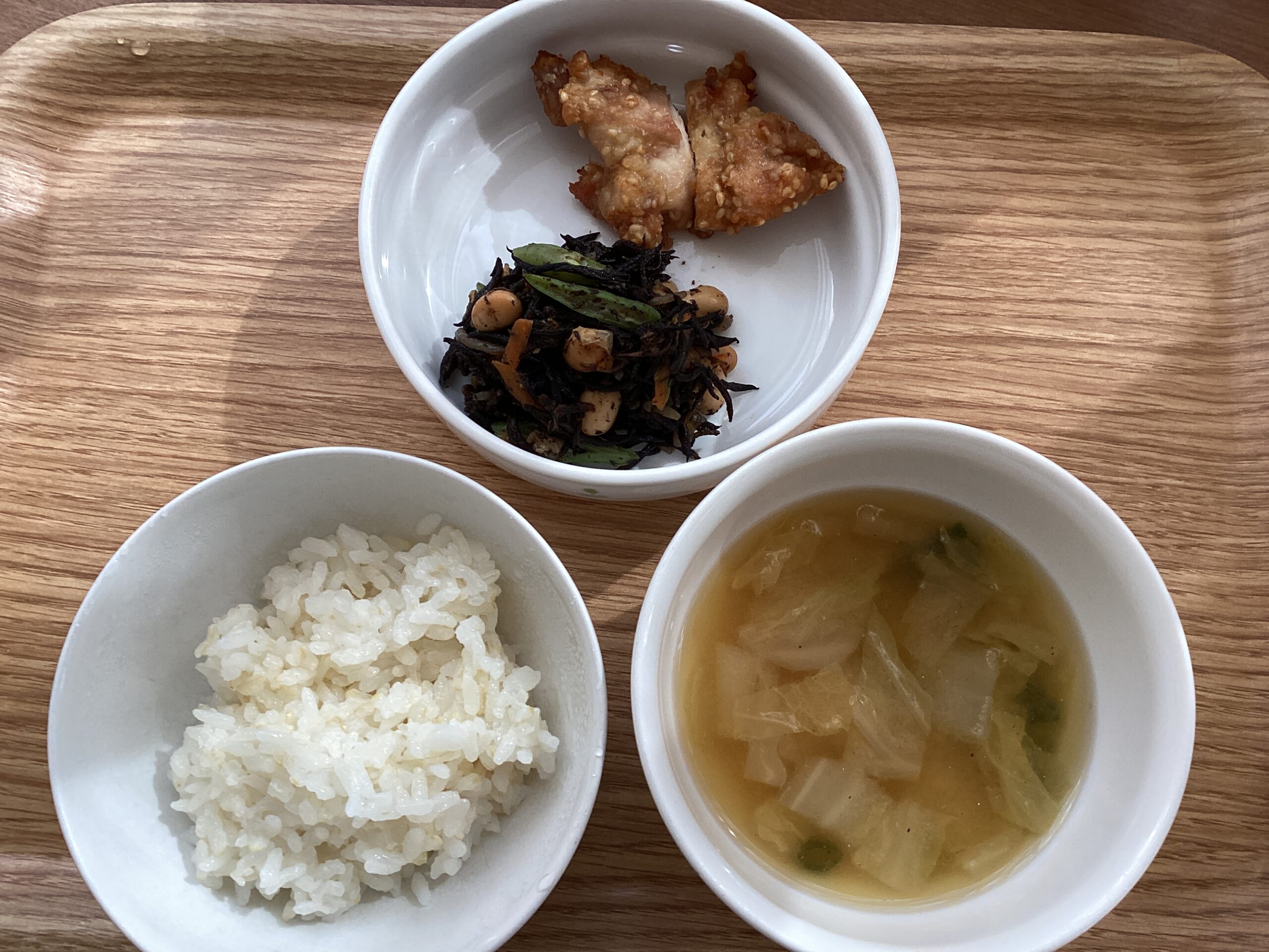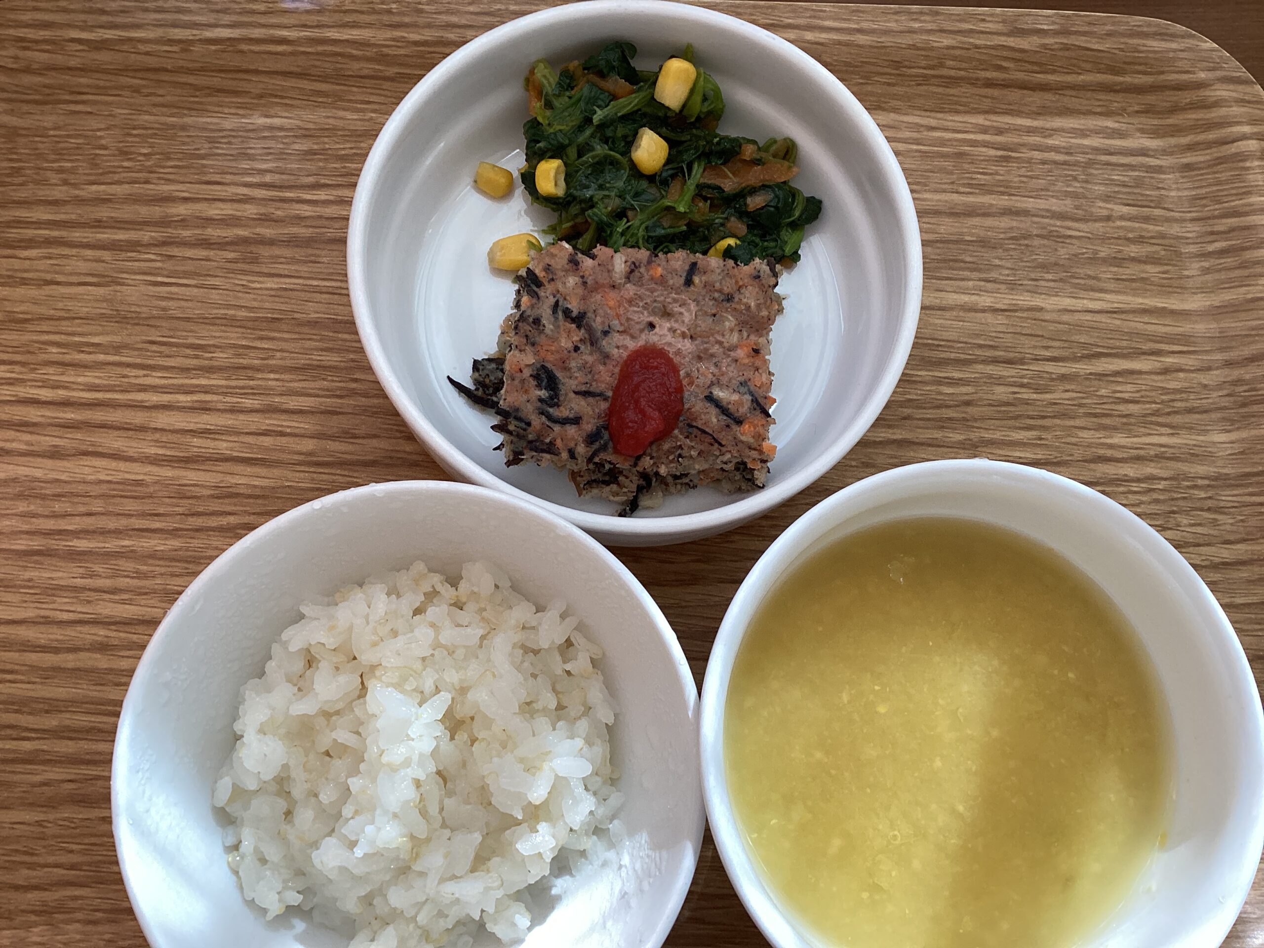 ご飯 コーンスープ ひじきミートローフ ポパイサラダ