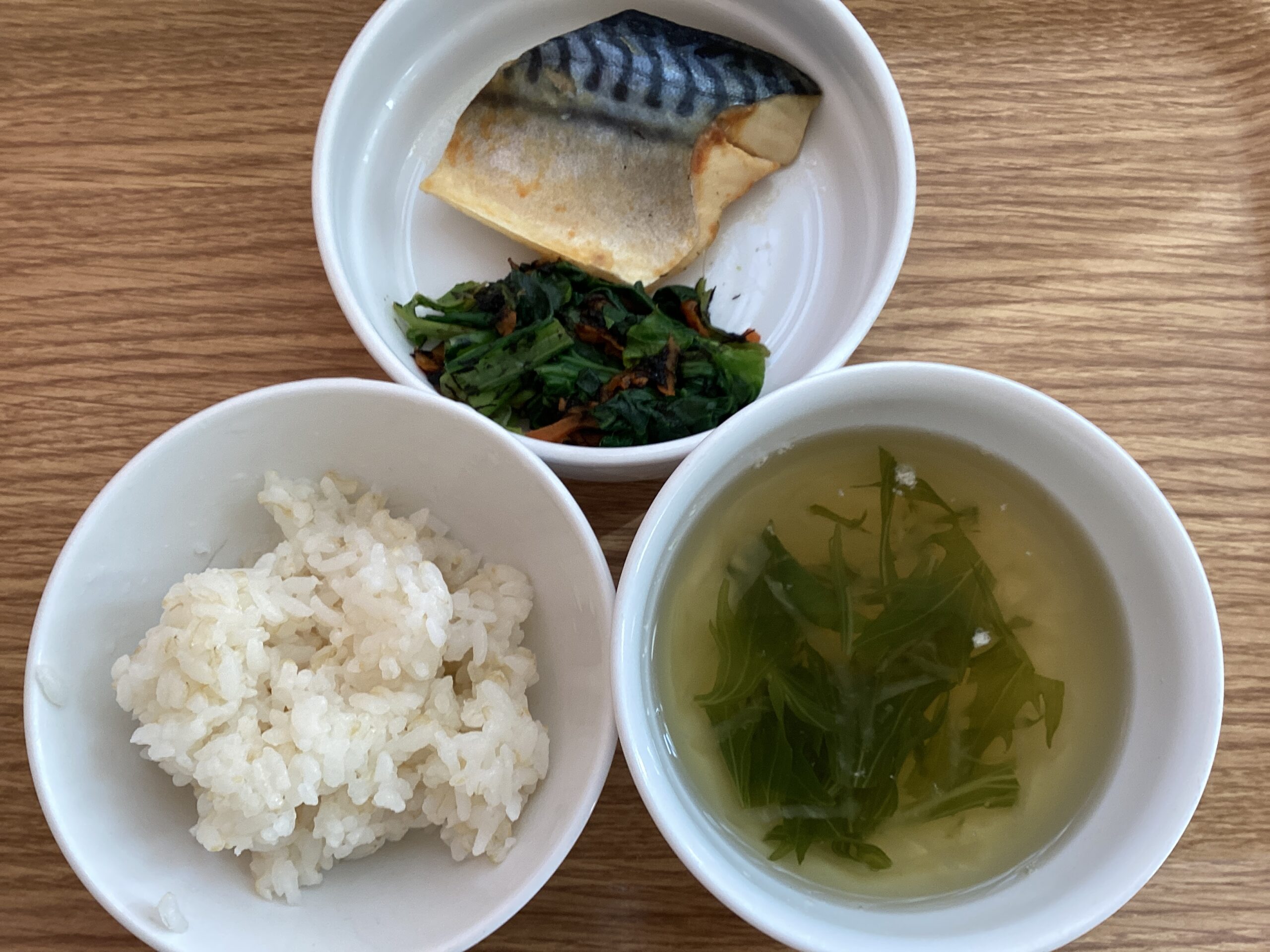 ご飯 大根のすまし汁 鯖みそ煮 小松菜磯辺和え
