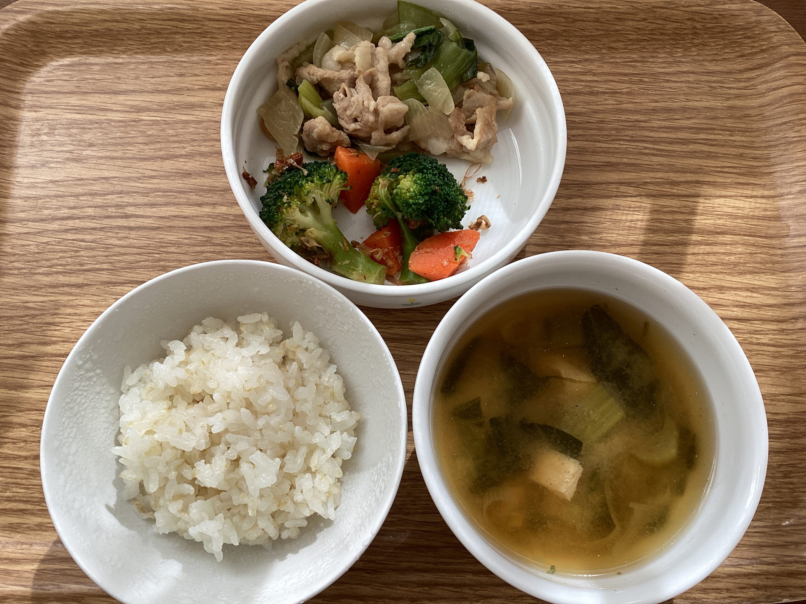 ご飯 小松菜のみそ汁 豚肉のしょうが焼き ブロッコリーおかか和え