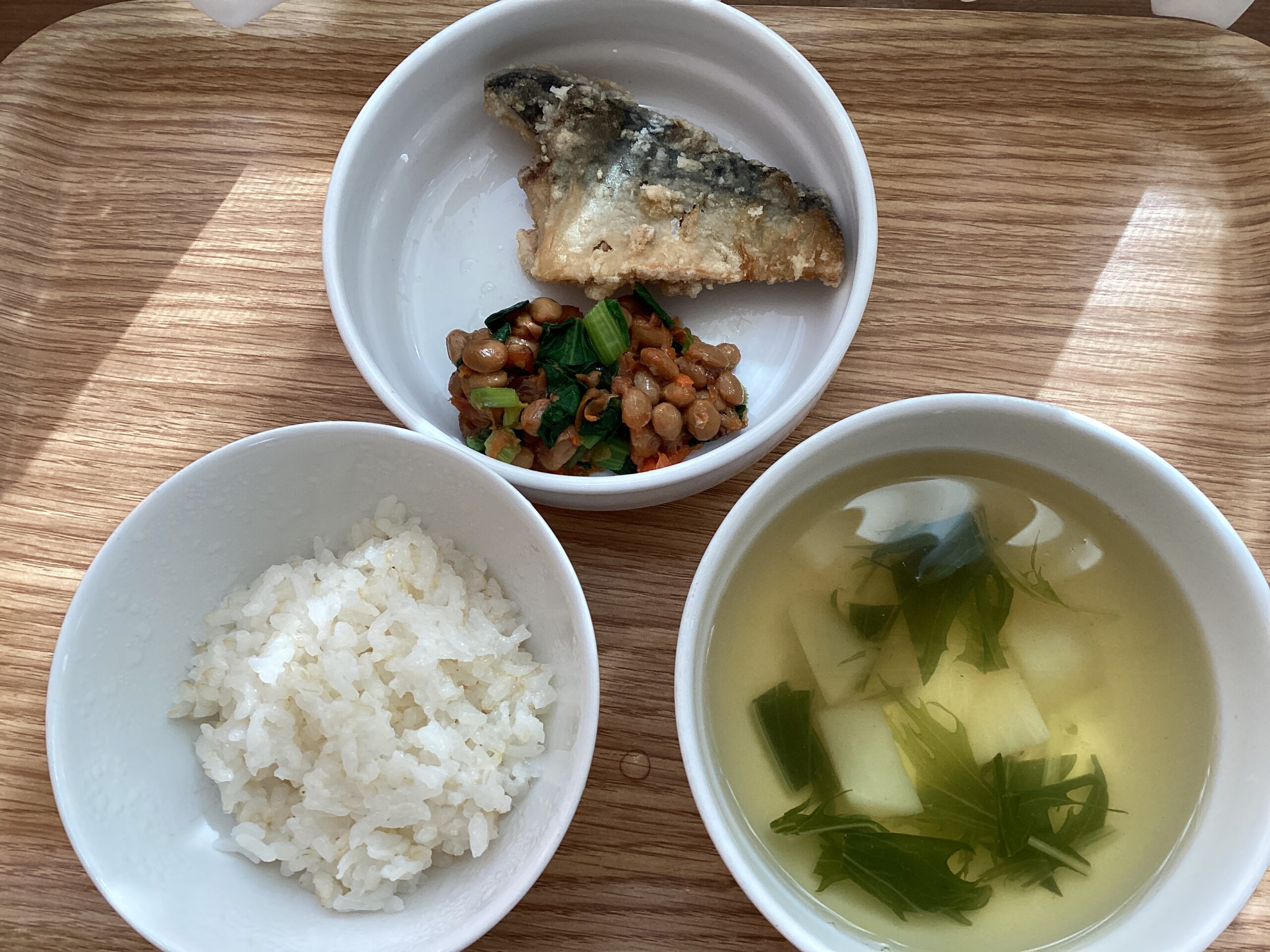 ご飯 かぶのすまし汁 鯖竜田揚げ 納豆小松菜和え