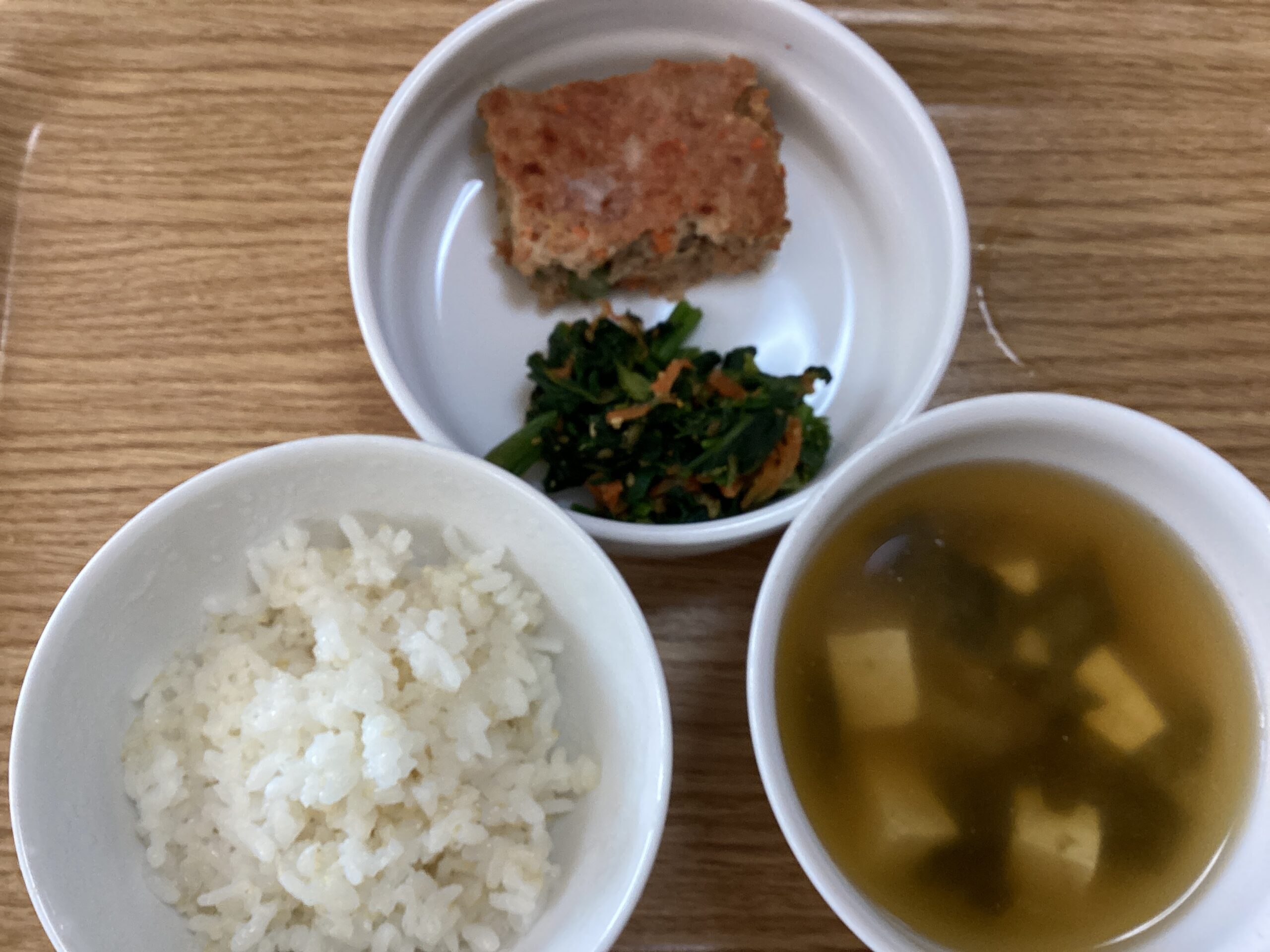 ご飯 豆腐とわかめのみそ汁 つくね焼き ほうれん草の胡麻和え