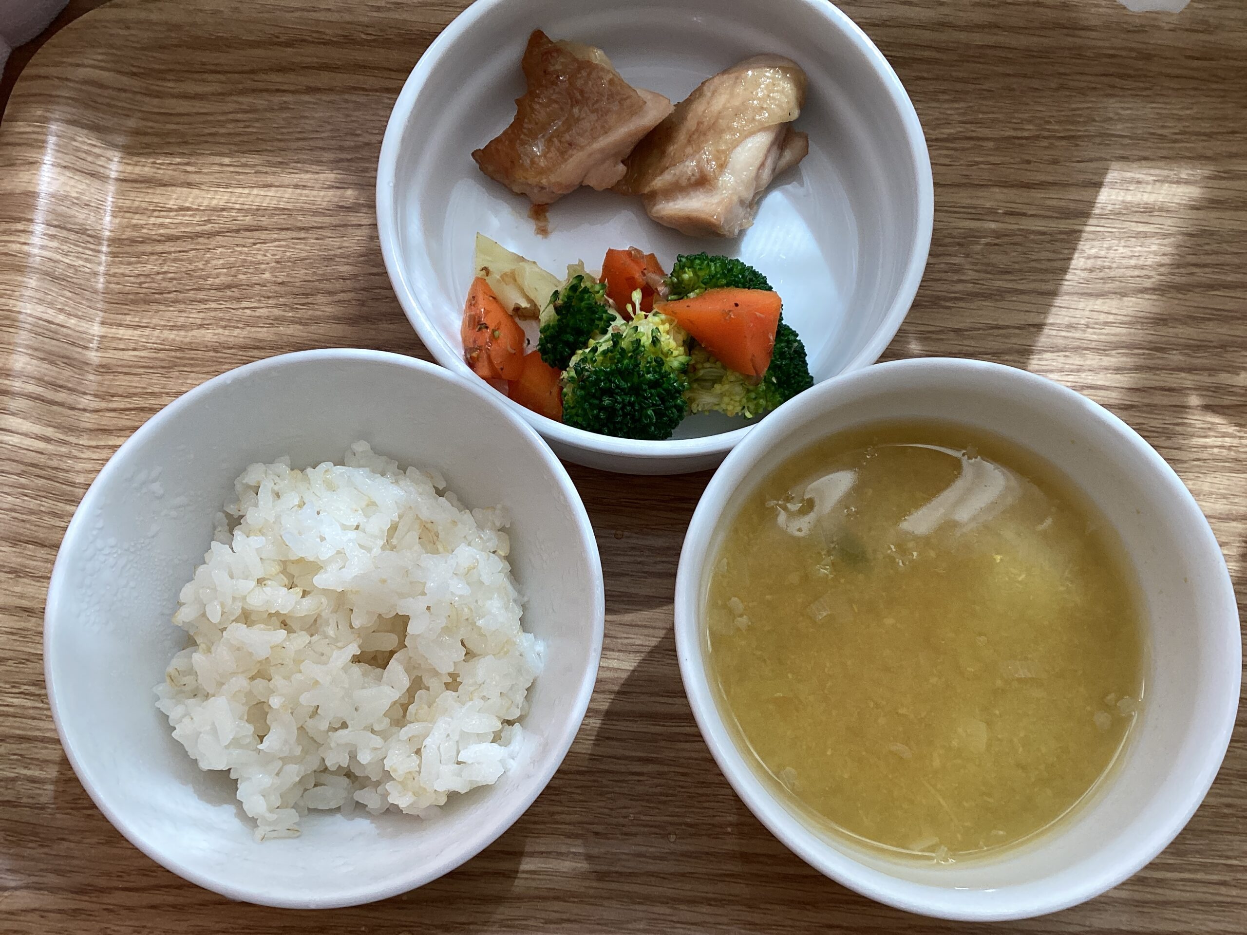 ご飯 コーンスープ グリルドチキン ブロッコリーおかか和え