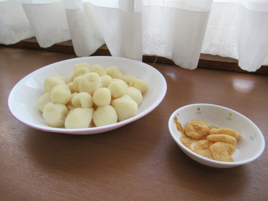 10月1日、木曜日。今日は十五夜、お月見です。 (おつきさまいろの洋服を着てくる子どもやスタッフもいましたよ) 2歳児さんが ”おつきみだんご” を作りました。 材料は、 お豆腐(絹)と 米粉を同量ずつ。 今回は300gずつ使いました。 それを、混ぜ... -