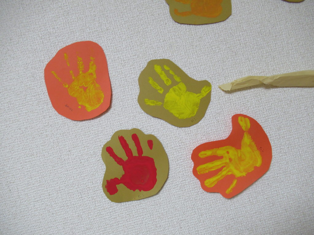 りとる・ピッピのお部屋にも "あき" がやってきました。 「だれのおてて?」 「おっきいね」「ちいさいね」 -