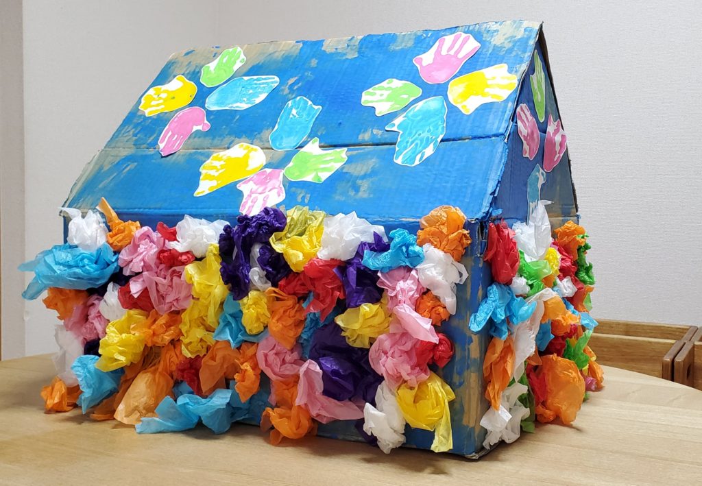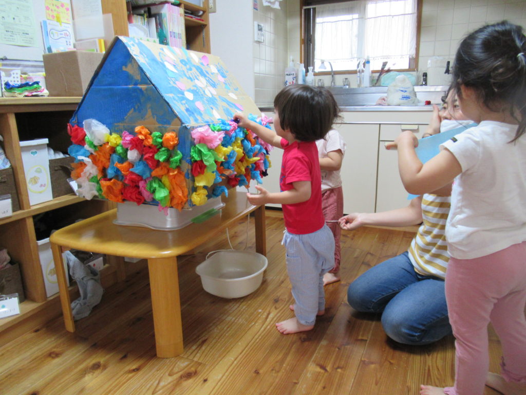 7月から作り始めたおみこし。 完成したのでみんなでわっしょい! また明日も「わっしょい」しようね。 ********** ボール入れのゲームも楽しみました。 -
