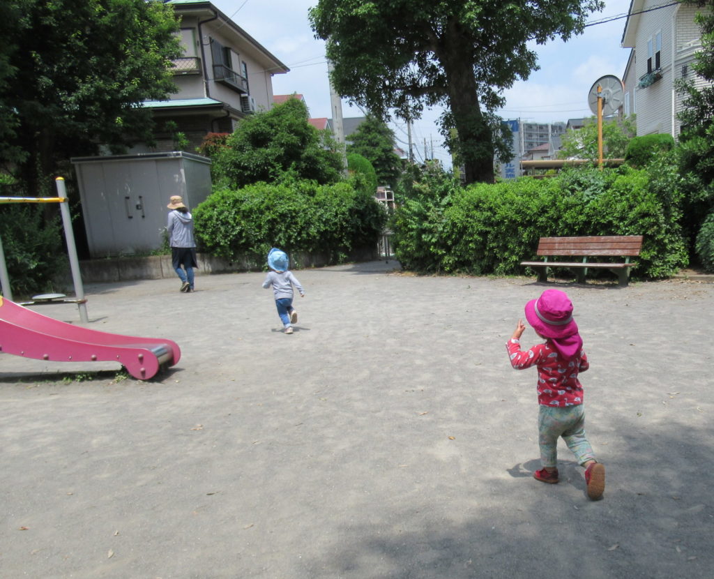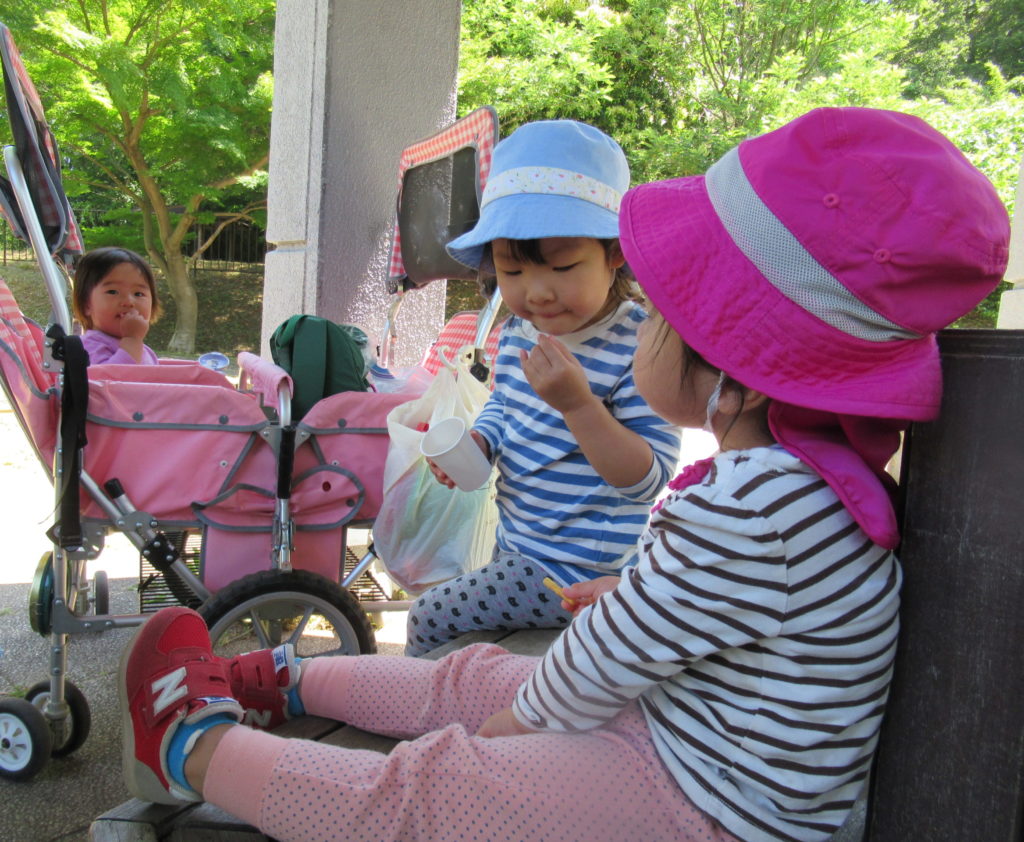 泉公園へ行きました。 「かけっこしよう~」「はやいでしょ!」 汗ばむ陽気になってきたので、 シャワーをしてさっぱりしてから給食を食べました。 -