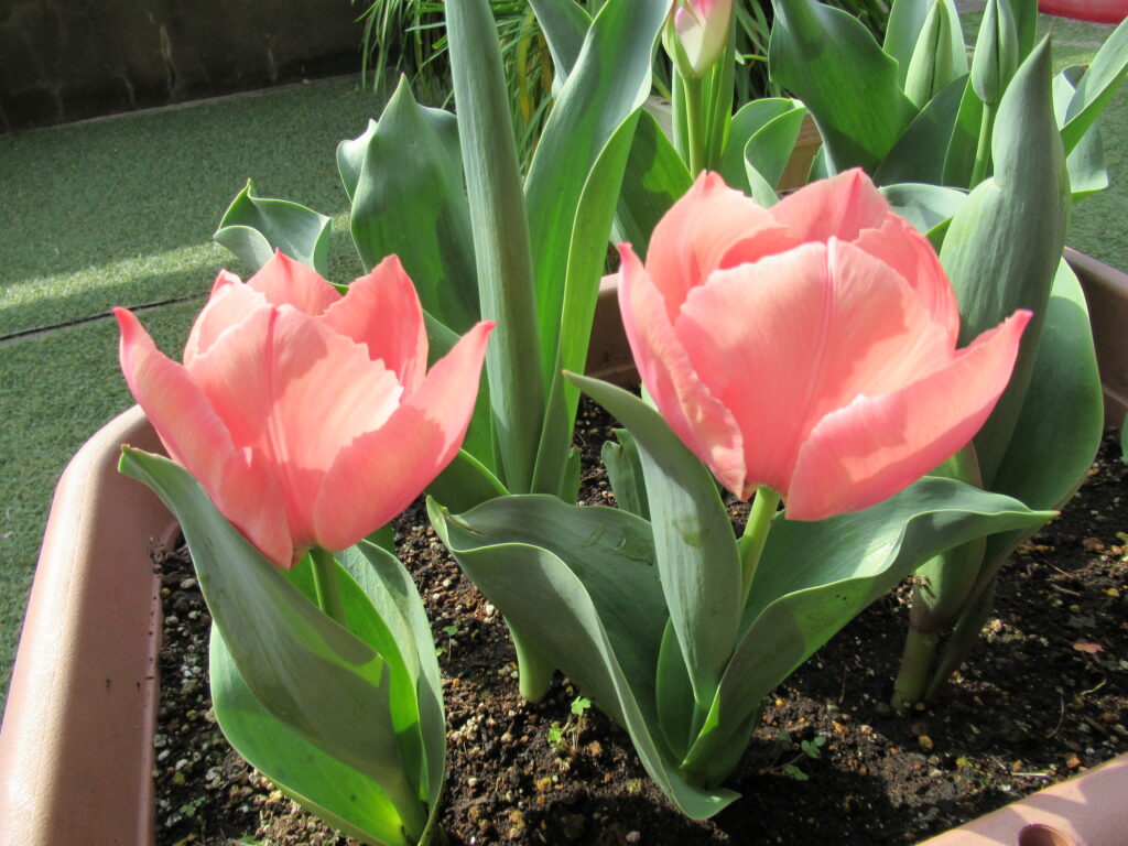 「ちゅーりっぷさいてるよ!」 子どもたちが毎朝教えてくれます。 とてもかわいらしい色の花が咲きました。 そしておとなりのプランターには… いちごと、 スナップエンドウの苗を植えて、 収穫の日を楽しみにしています。 -