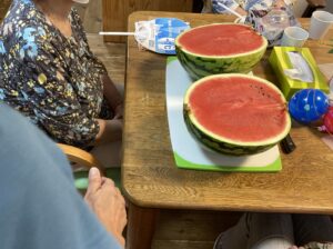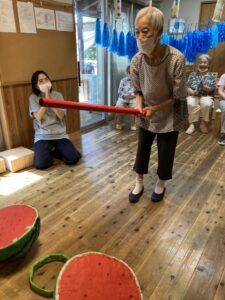 ヨーヨーつりやスイカ割り、盆踊り、かき氷、