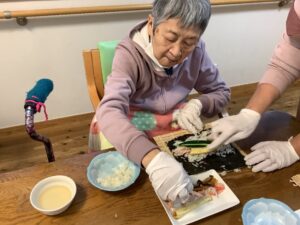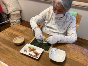 恵方巻を作ろう! 2026 3/08 通所介護事業 デイサービスさくら 節分の日! みんなで恵方巻作り 自分で作った恵方巻は格別 美味しくできました。うまく巻けるかな!次に何をいれようかないい感じですか自分で作った恵方巻、美味しいね。今日のお昼は恵方巻、上手にできたかな。 通所介護事業 デイサービスさくら URLをコピーしました! URLをコピーしました! 鬼のダンスが始まった! 歌声サロン 冬の頃