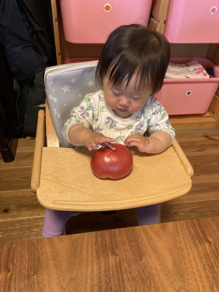大きなトマトを頂いたのでトマトジュースを作りました 重くて、トマトの匂いが… 手で押したり、つぶしたり、たたいたりと作り方はいろいろです 自分で器に移します。こぼさないように入れる真剣な顔…可愛いですね 一歳の「もっとちょうだーい!」の子ども...