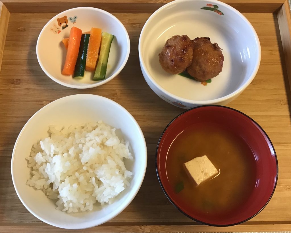 8/9(木) 給食はつくね焼き、おやつはみかん寒天。