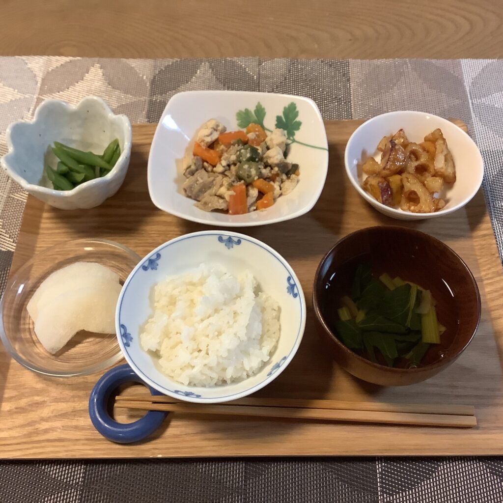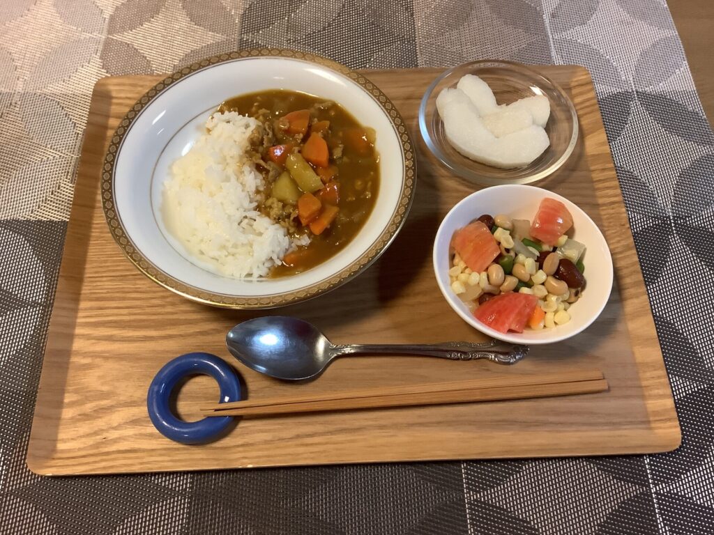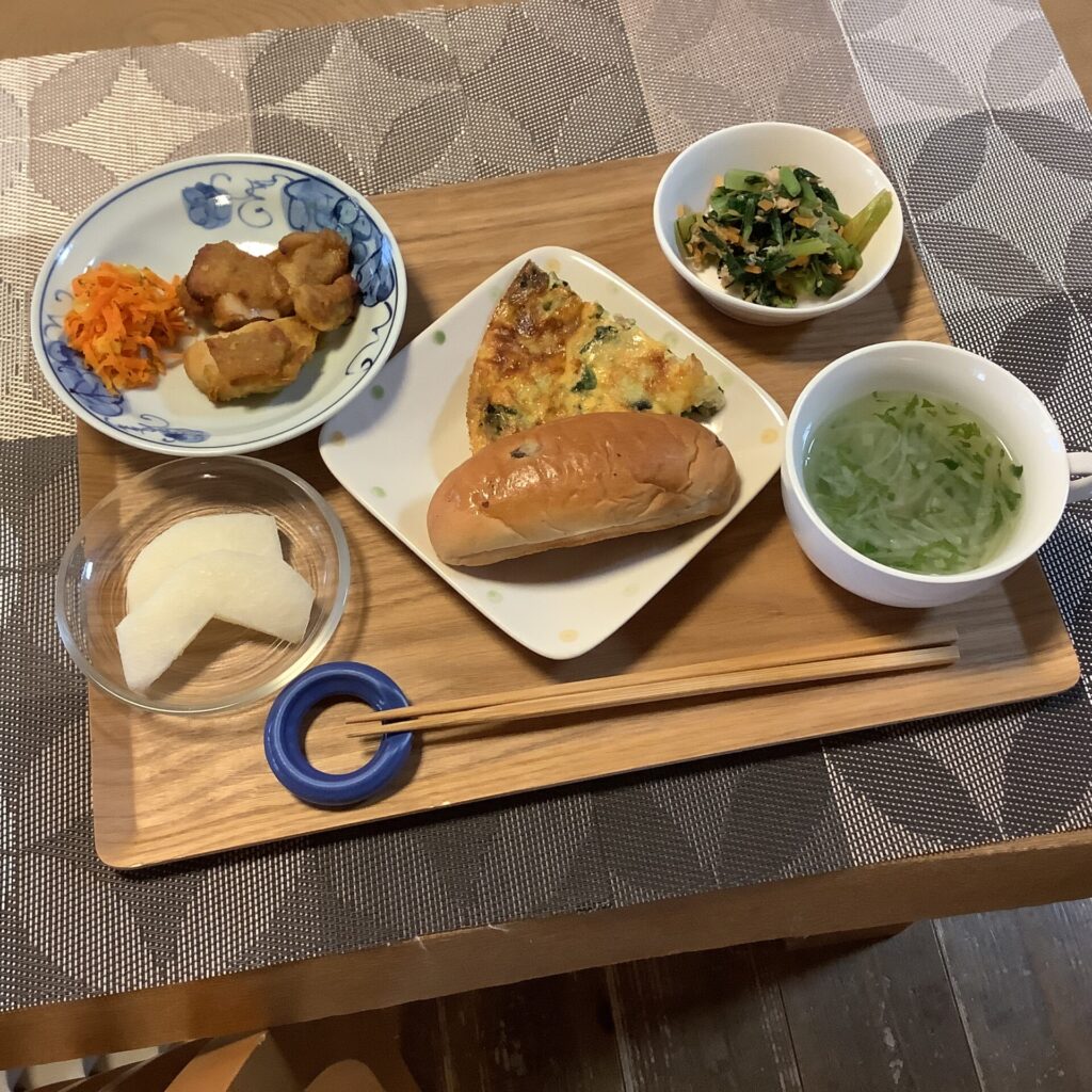 美味しく食べるお昼ご飯、 栄養バランス、味、見た目も大事ですね。 美味しくいただくためにお肉の苦手な方にはお魚に変え提供しています。 -
