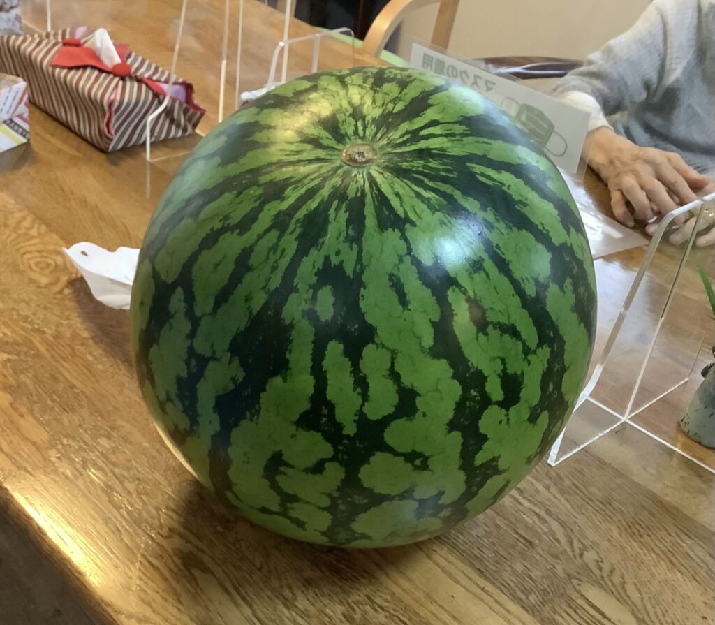 ご近所の方から15㎏もある大玉の尾花沢のスイカをいただきました。 りとるのこどもたちも大きなすいかに見とれています。 スイカ早く食べたいね。 音もいいね。「ぼんぼん」とそろそろ食べごろ。 真っ赤な果肉、シャリッとした歯ざわりとみずみずしい果... -
