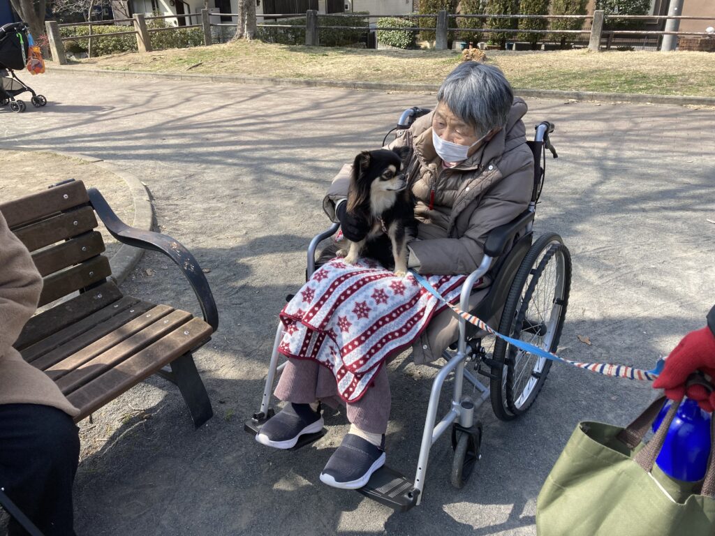 体操をしたり、ワンちゃんと触れ合ったり。 いつもの人と、いつのも場所で・・・ 今日もさくらのみなさんはとっても元気です。 -