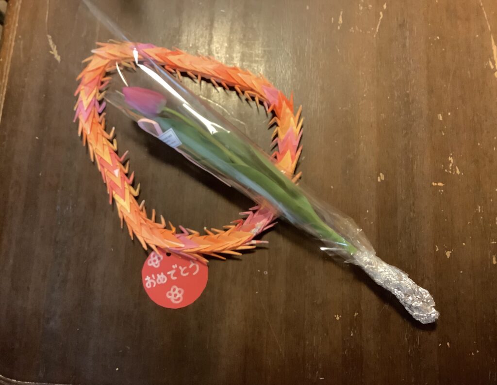進級・卒園おめでとう。 たまには遊びに来てくださいね。 「ありがとう」の気持ちを込めて、お花とメダルをプレゼント。 -