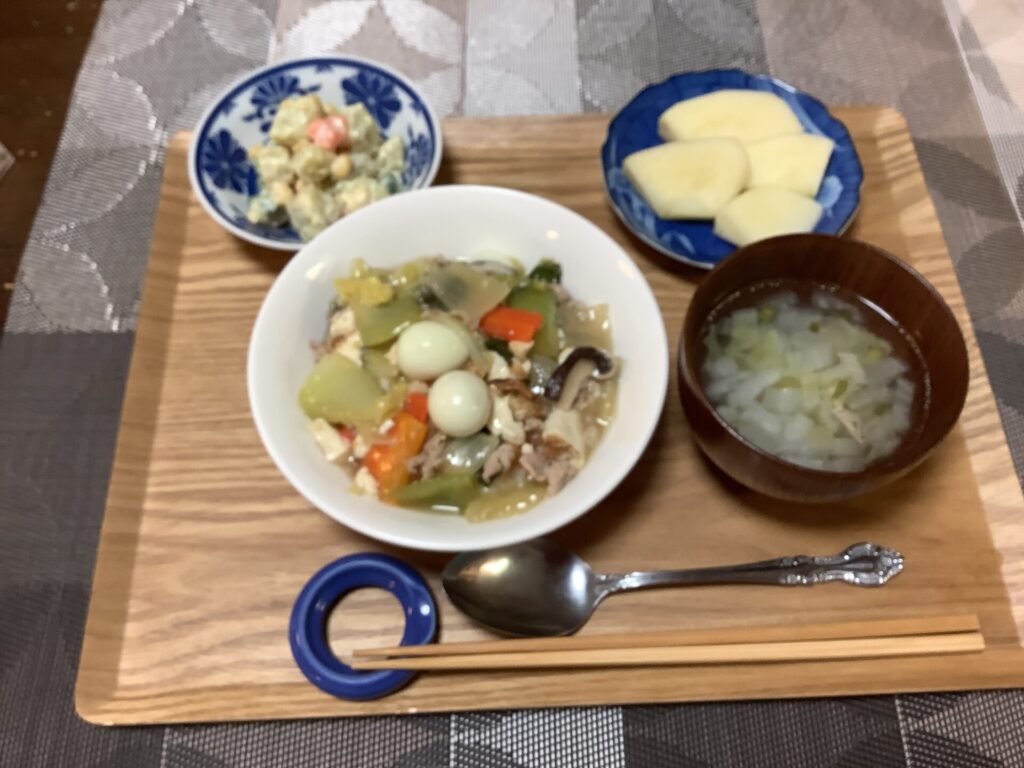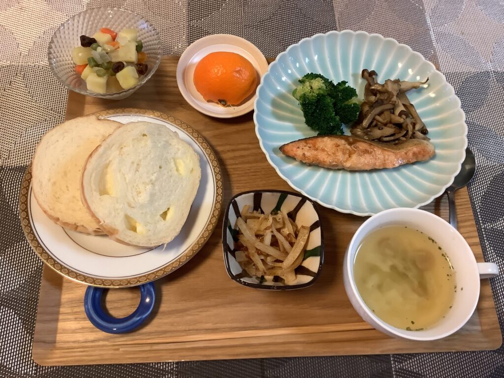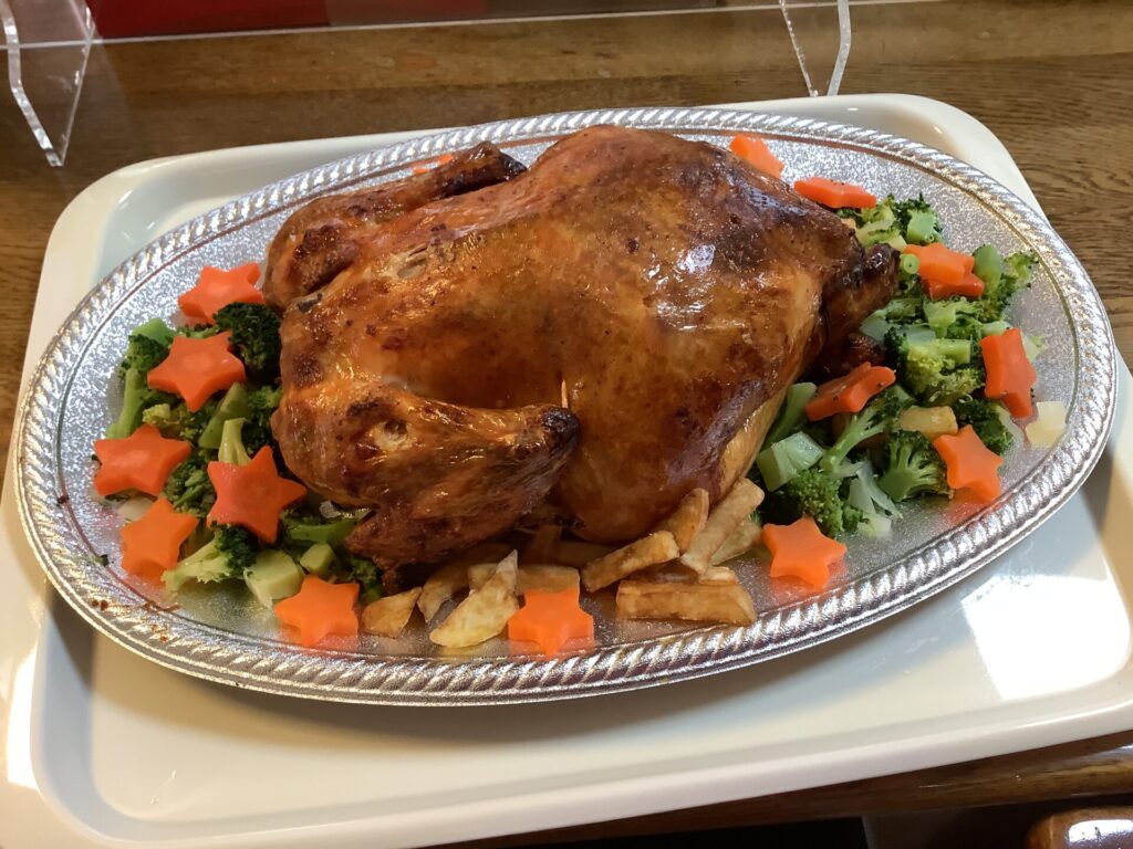 今年最後の週のお昼ご飯です。 今日のお昼ご飯のメニュー紹介すると、「お腹が空いたね」「そうね」と元気な声があがり 食欲があることはいいことですね。生きる力は食べることですね。 -