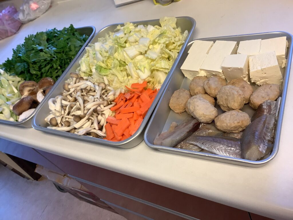 今日のお昼は寄せ鍋です。 みんなで食べると美味しいね。 -