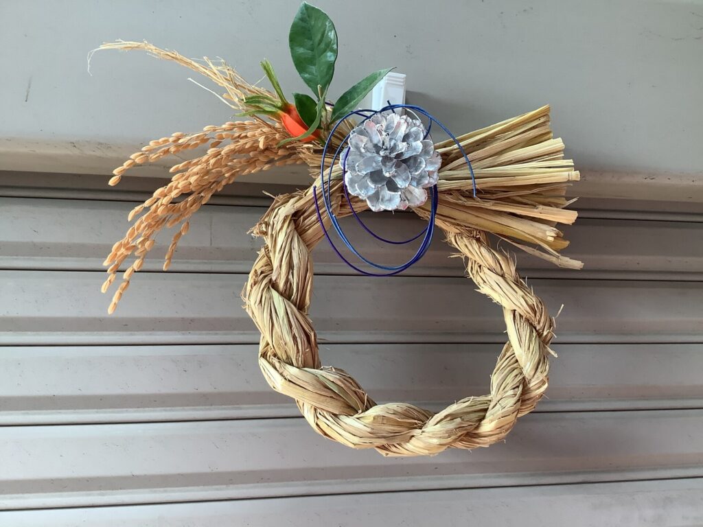 りとるのこどもたちとお餅つき。利用者の皆さんも頑張っています。 つきあがった餅で鏡餅作り、そのあとにしめ縄飾り作りです。 藁に水を含ませて、しっかりと編む。皆さん真剣です。 素敵なしめ飾りができました。 -