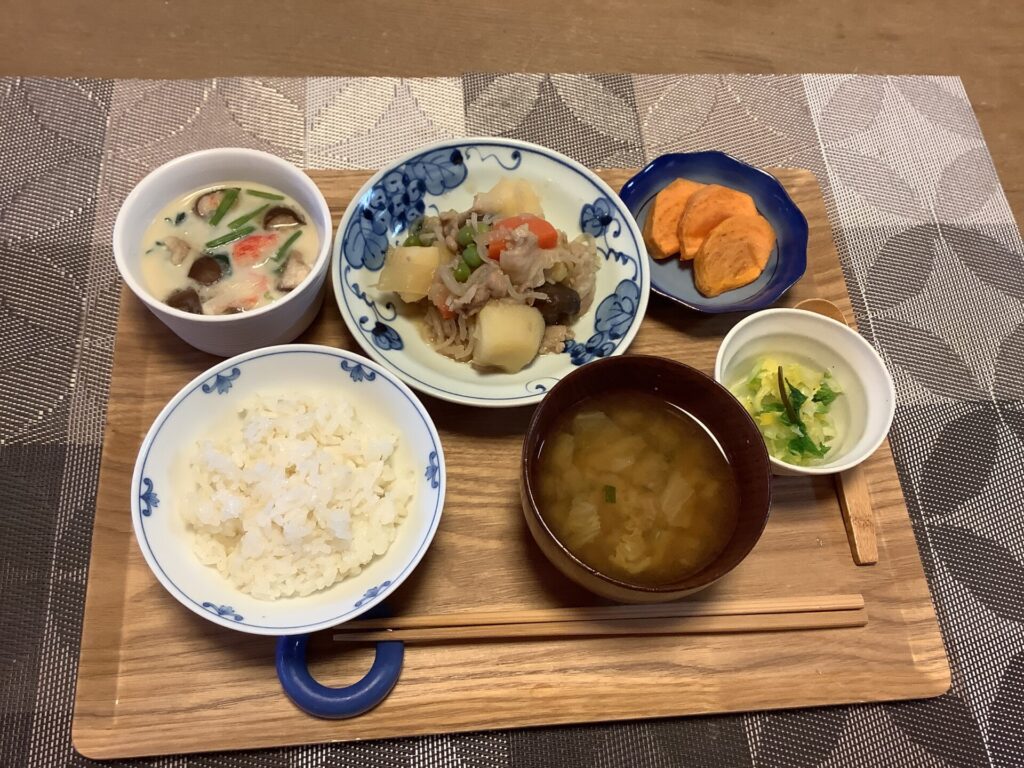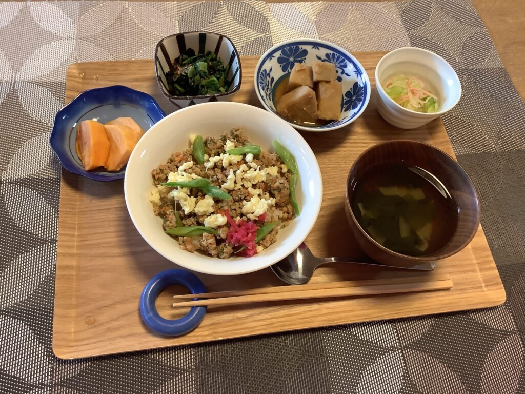 今週のメニューは、はんぺんチーズinフライ、3色丼、かじきの照り焼き お楽しみメニューはご希望のお寿司、出前をとりました。 「おいしかったね」と、皆さん、お寿司はお好きなようです!
