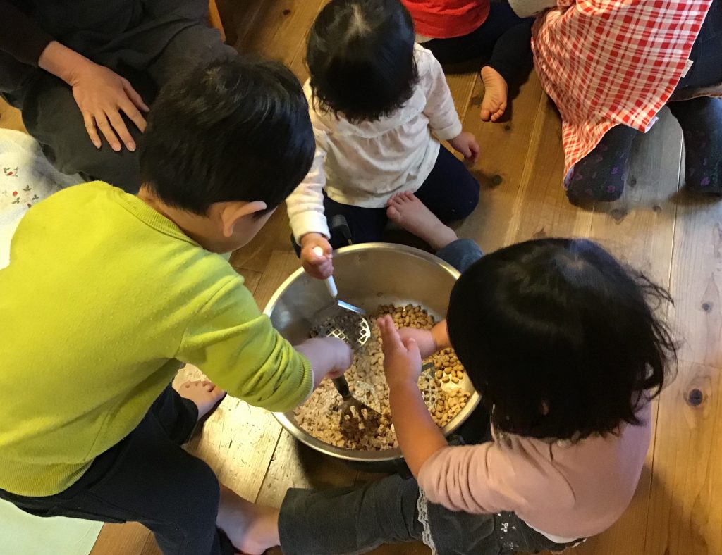 2月3日 月曜日、節分です。今年もデイさくらの利用者さんと大場りとるの子どもたちが一緒に豆まきをしました。前の週に準備した折り紙の豆入れに豆を入れて、さあ「鬼はそと〜」と威勢よく第一声、、、のはずでしたが、お面をかぶった鬼がデッキの端に現れ... -