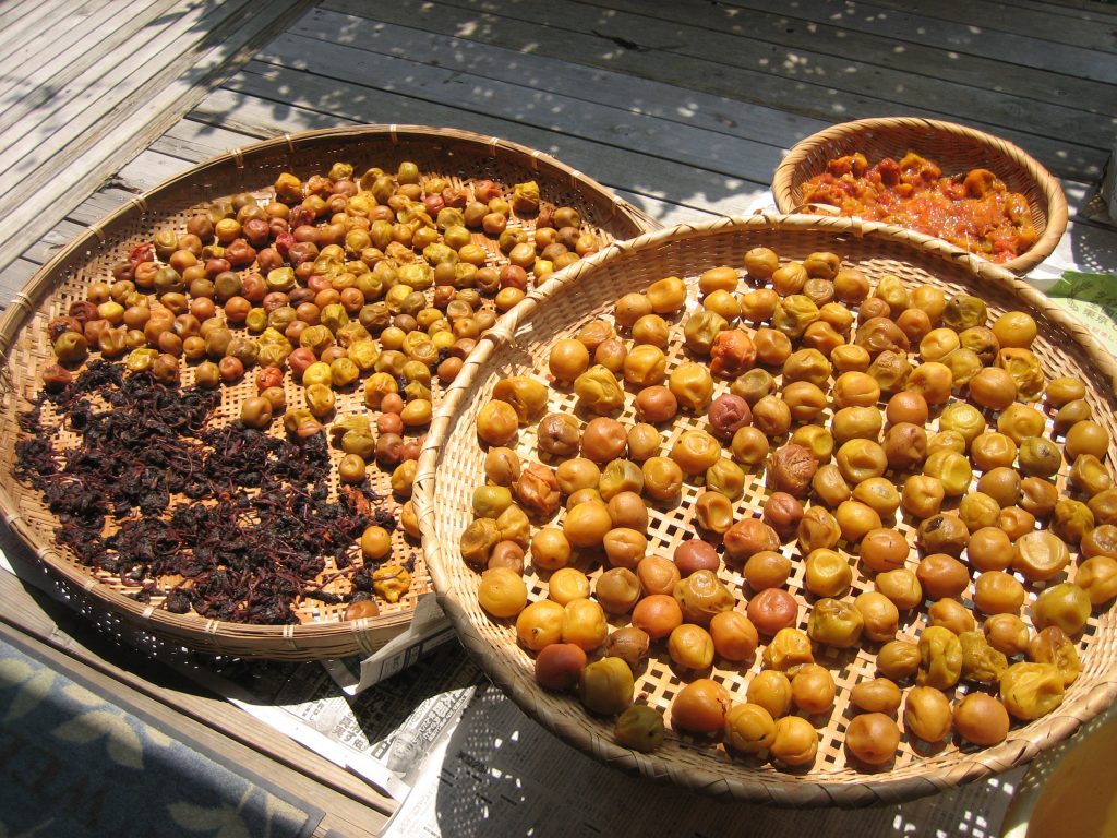 今年もデイサービスさくらのご利用者さんの庭からいただいた梅で、梅干しを作りました。 やっと梅雨があけ梅の土用干し。梅仕事はご利用者さんの声かけで始まります。 -