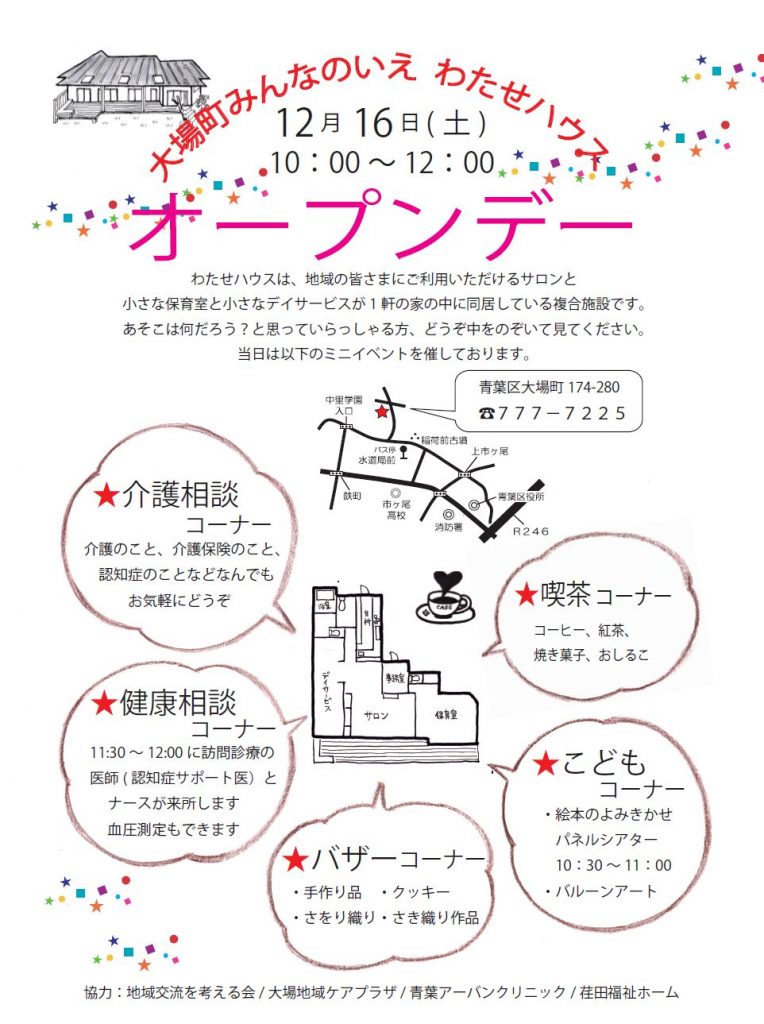 9月26日(火)10:00~11:30 わたせハウスおしゃべりカフェ企画 在宅医療のしくみや現状について、実際に青葉区内で訪問医療に携わっている 「青葉アーバンクリニック」のドクターと看護師の方を講師に迎え、お話を伺 います。訪問診療とはどのようなもの... -