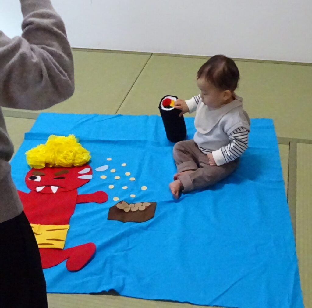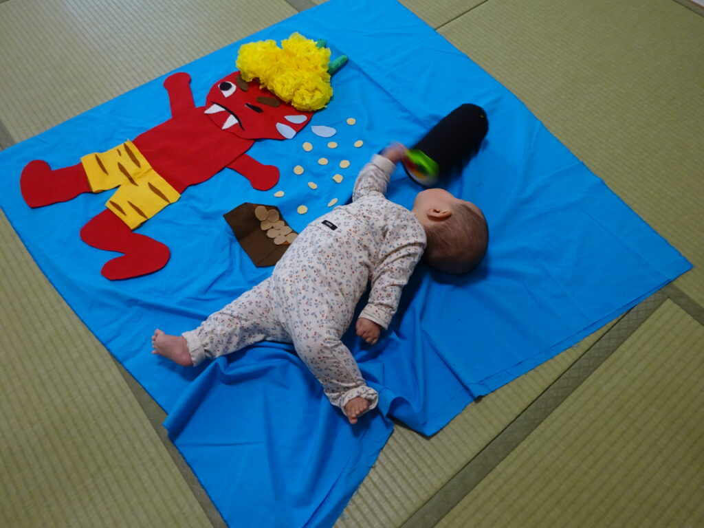 小さいお子さんはふわふわの鬼をさわって感触を楽しんでいました♪