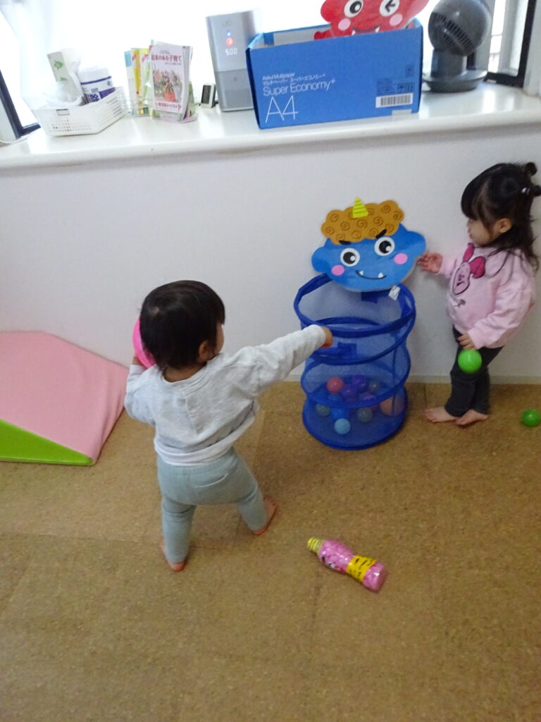 ボールをエイ!っと離れたところから投げ入れたり、近くからそ―っと入れてみたり