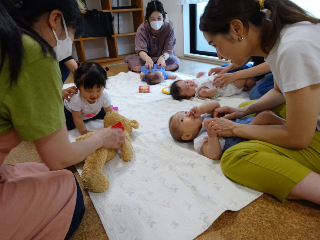 6月のベビー優先の日のひとこま みんなお互いの様子が気になる様子 くまちゃんも気になるね(^^♪ 次回ベビー優先の日は、7/25(火)14:00~14:30です。 保護者の方の水分もお忘れなくお持ちくださーい -