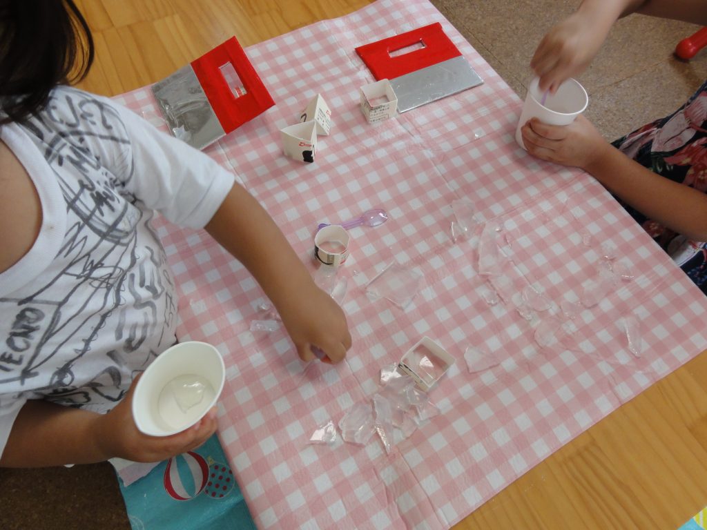 最近は寒天あそびをしています。 まずは触ってみて・・・ 型抜きをしたり、スプーンですくってみたり、コップにいれてみたり、まぜてみたり といろいろな遊びに発展します。 涼し気です!