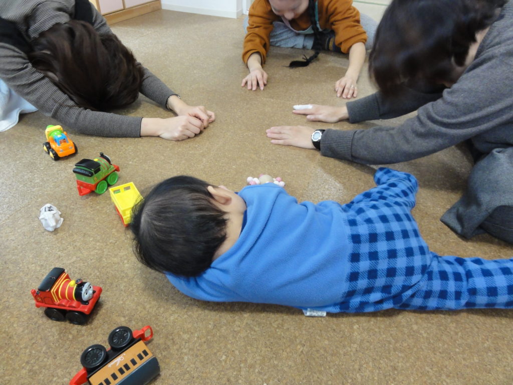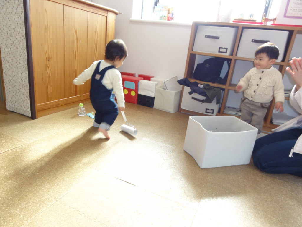 おやおや。お掃除のおてつだい、ありがとう♪ こちらは電車遊び。 「ここを持つんだよー」 姉妹みたい? 明日は土曜ひろばを開きます。 -