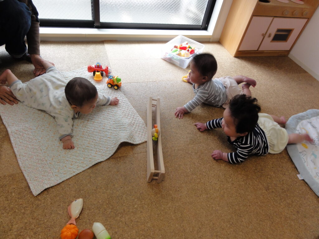 この春、広場にはいくつかの新しいおもちゃがデビューしました。 ゆらゆら揺れる木のおもちゃに赤ちゃんたちの視線は釘付けです(笑) -