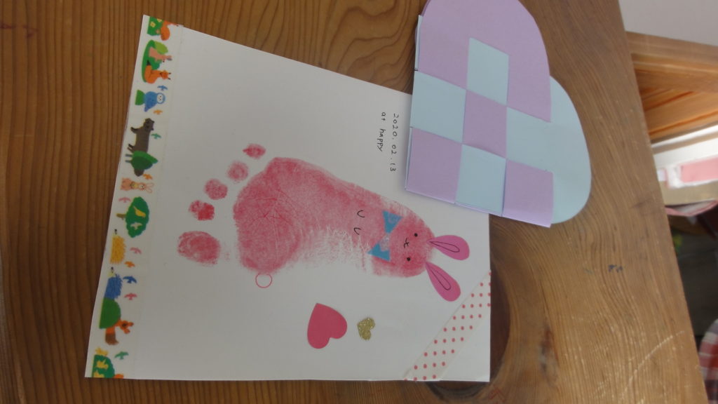 今日も一気に気温があがって、一層春めいてきましたね。上着を着ると汗だく? バレンタインに向けて、ハートの袋を作成中~ 作るのが難しく見えるこの袋ですが、 子どもが脇で遊んでる間にできました。 出来上がったら思わずみんなで拍手!ちょっとした達成... -