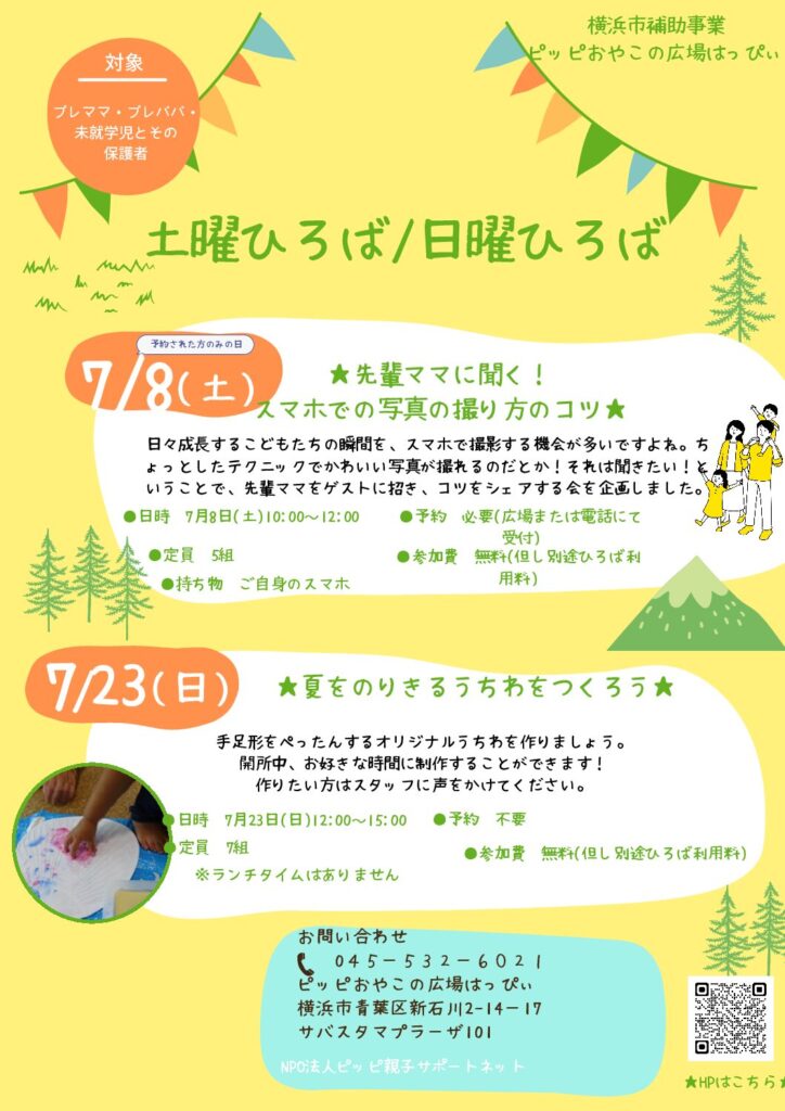 【予告】【予約受付中】7月の土曜ひろば~先輩ママに聞く!~スマホでの写真の撮り方のコツ~