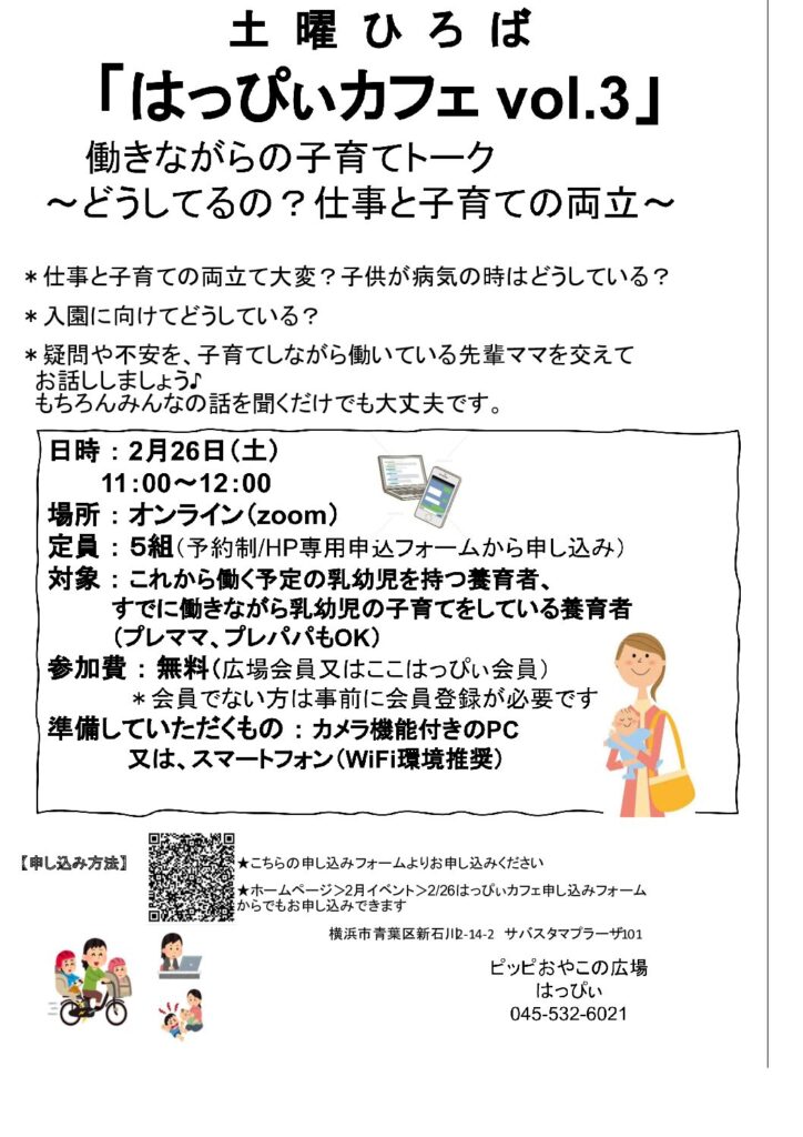 【申し込み受付開始】2/26 はっぴぃカフェVol.3 働きながらの子育てトーク!