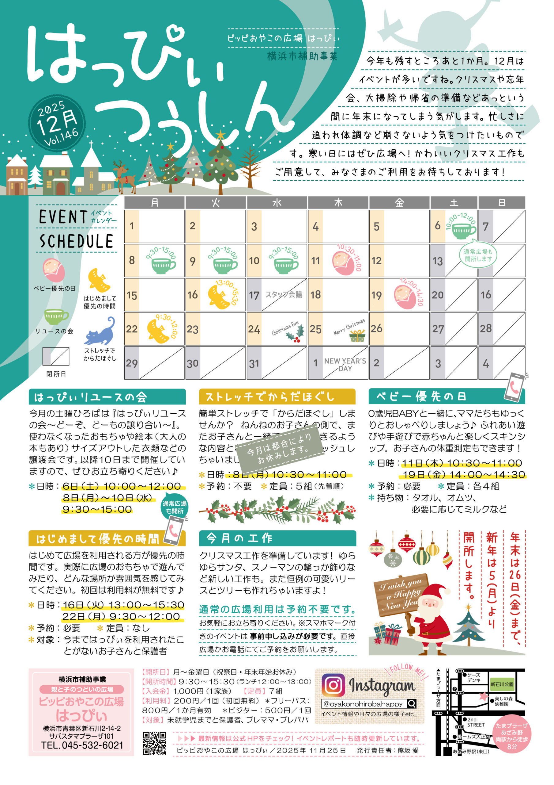 日時:12月6日(土)10:00~12:00 ※通常広場も開所しています!