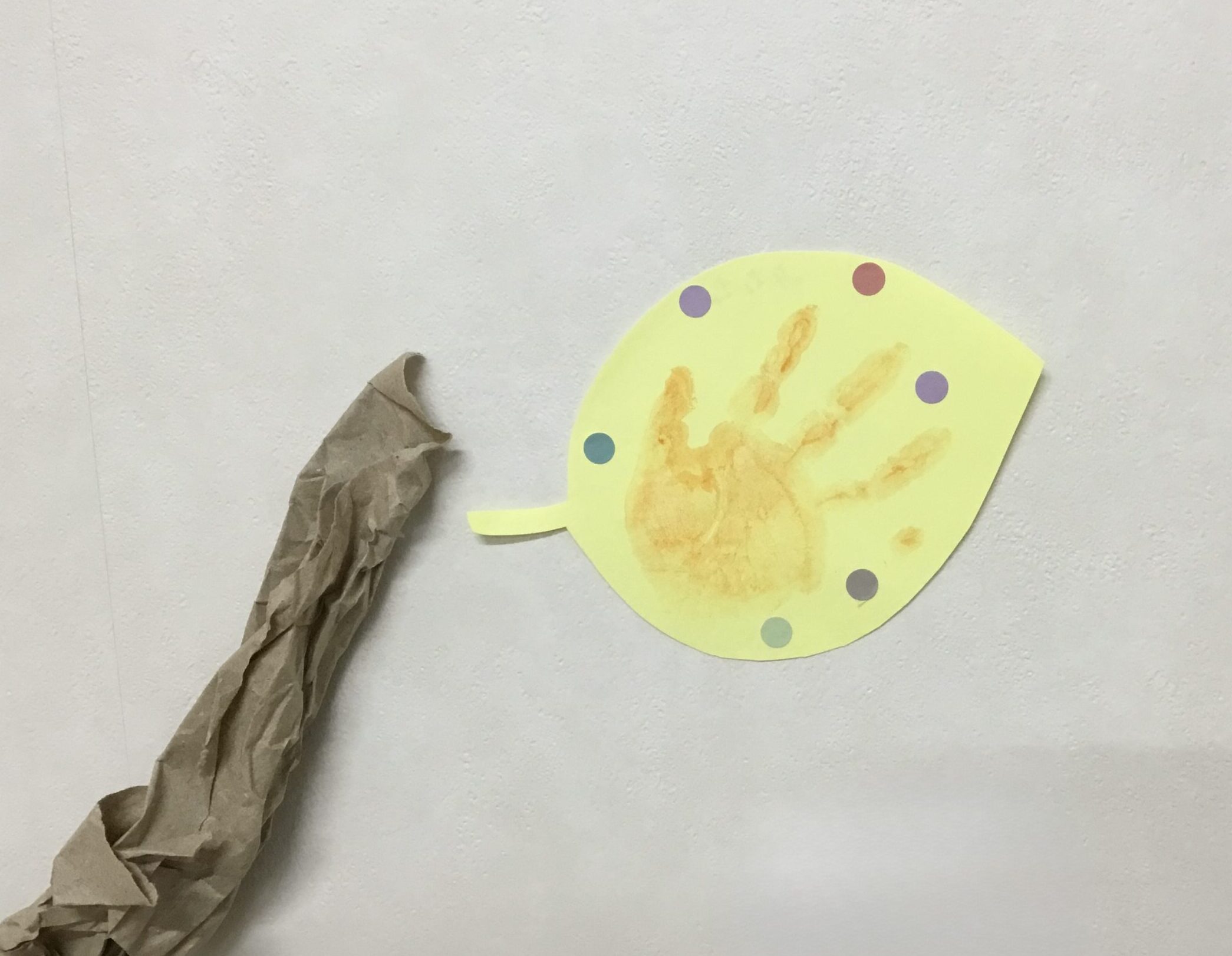 2枚作って1枚はお家へのお土産に、もう1枚はひろばのお部屋の木の葉っぱになりました〜