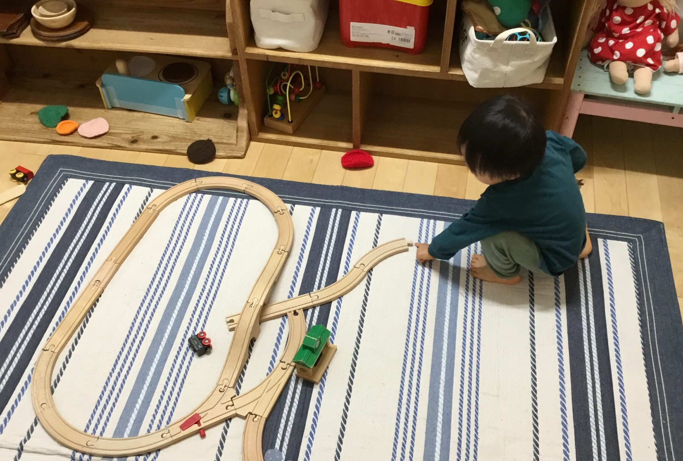 10月28日、今日は貸切?電車の線路をじっくり作ります。だんだん長くなるよ・・・