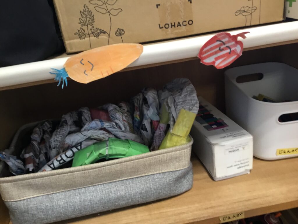 紙芝居やゲームをし、食べてもらえない野菜をみんなで探そうとお部屋にかくれている野菜を探すこどもたち。小学生がかくしたそばから見つけていく子も!